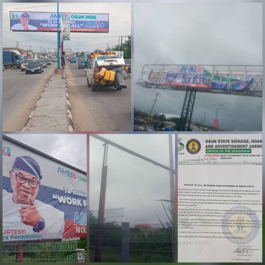 On July 2nd, a letter was hurriedly issued by Governor Ademola Adeleke, through a government agency, to stop the erection of a campaign billboard for Asiwaju Munirudeen Bola Oyebamiji (AMBO), at Ogooluwa—a clear reactionary move that came only a day after the billboard was mounted on July 1st.