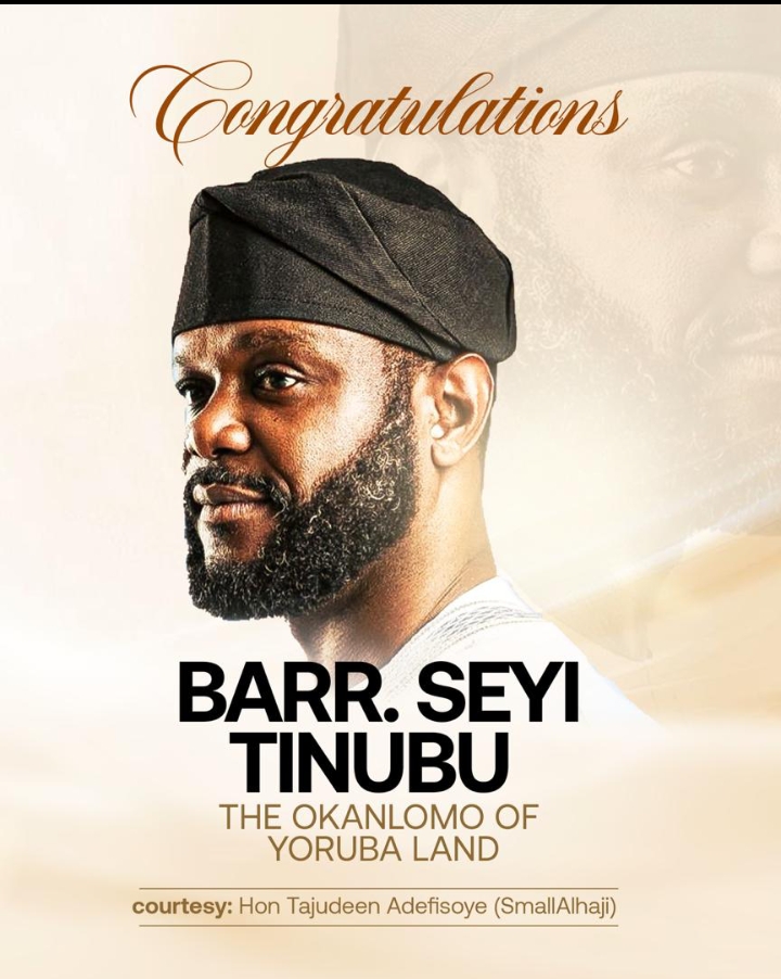Team Small Alhaji extends profound and heartfelt congratulations to Barrister Seyi Tinubu on his well-deserved installation as the Okanlomo of Yoruba Land by the Alaafin of Oyo, a revered custodian of our rich cultural heritage.