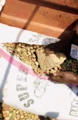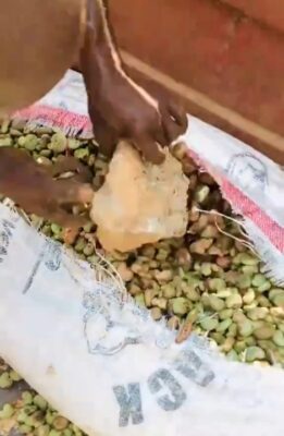 In the viral video, angry traders were seen cutting open the sacks of cashew nuts with a cutlass. They expressed shock and disbelief after discovering solid cement blocks hidden inside the bags, a move believed to have been used to cheat buyers by inflating the weight.