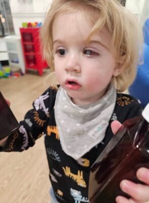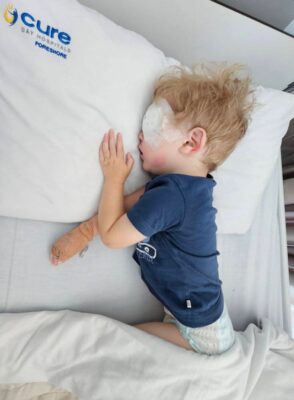 The family said their child, then just over a year old, first developed what appeared to be a routine eye infection. Within days, they noticed a lesion forming on the eye and realized the child had lost sensation in the affected area.
